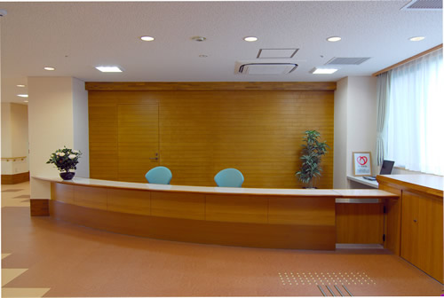 広く明るいエントランス。ご入所の方を暖かくお迎えいたします。